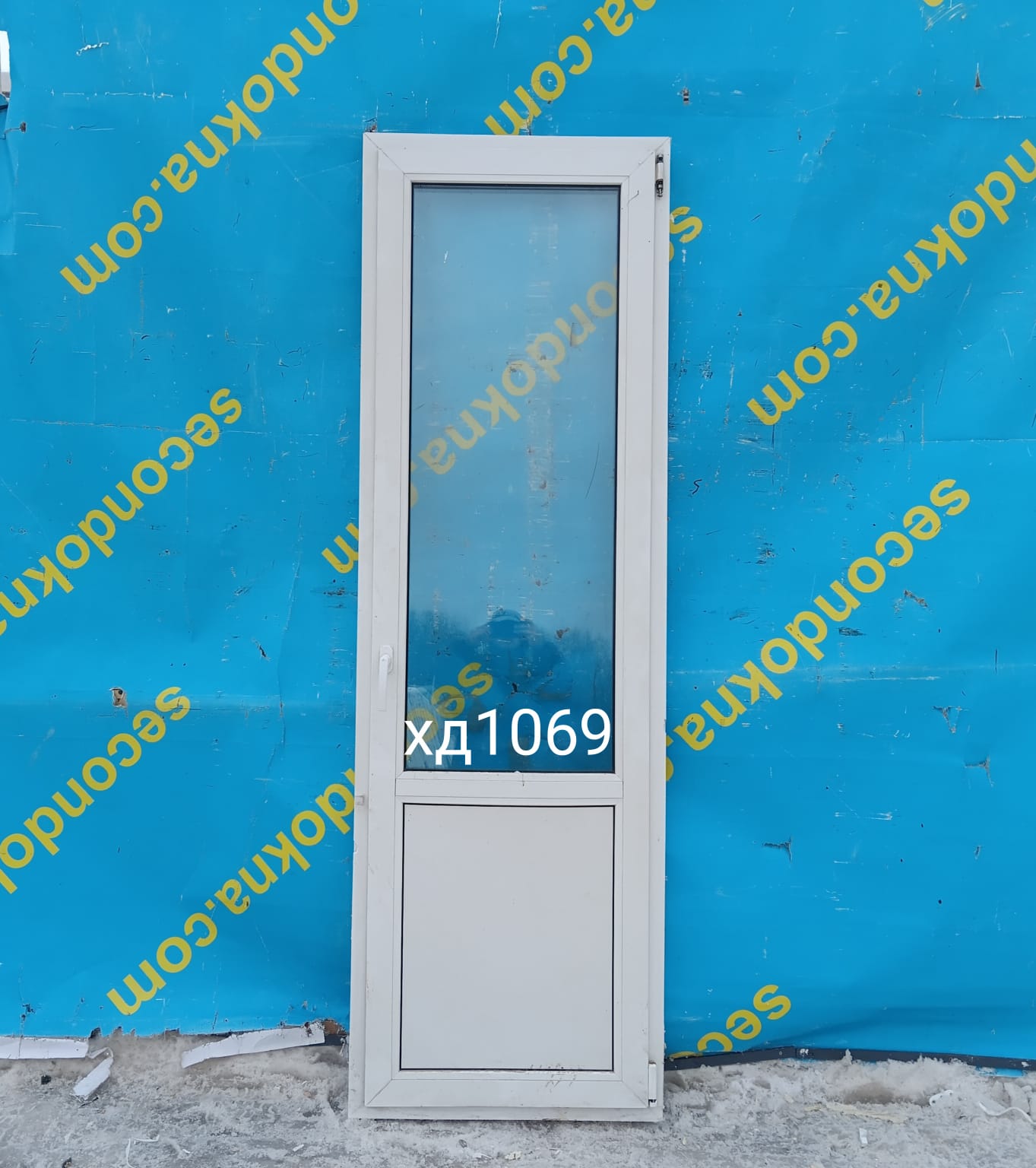Пластиковая балконная дверь Б/У с двухкамерным (3 стекла) стеклопакетом.