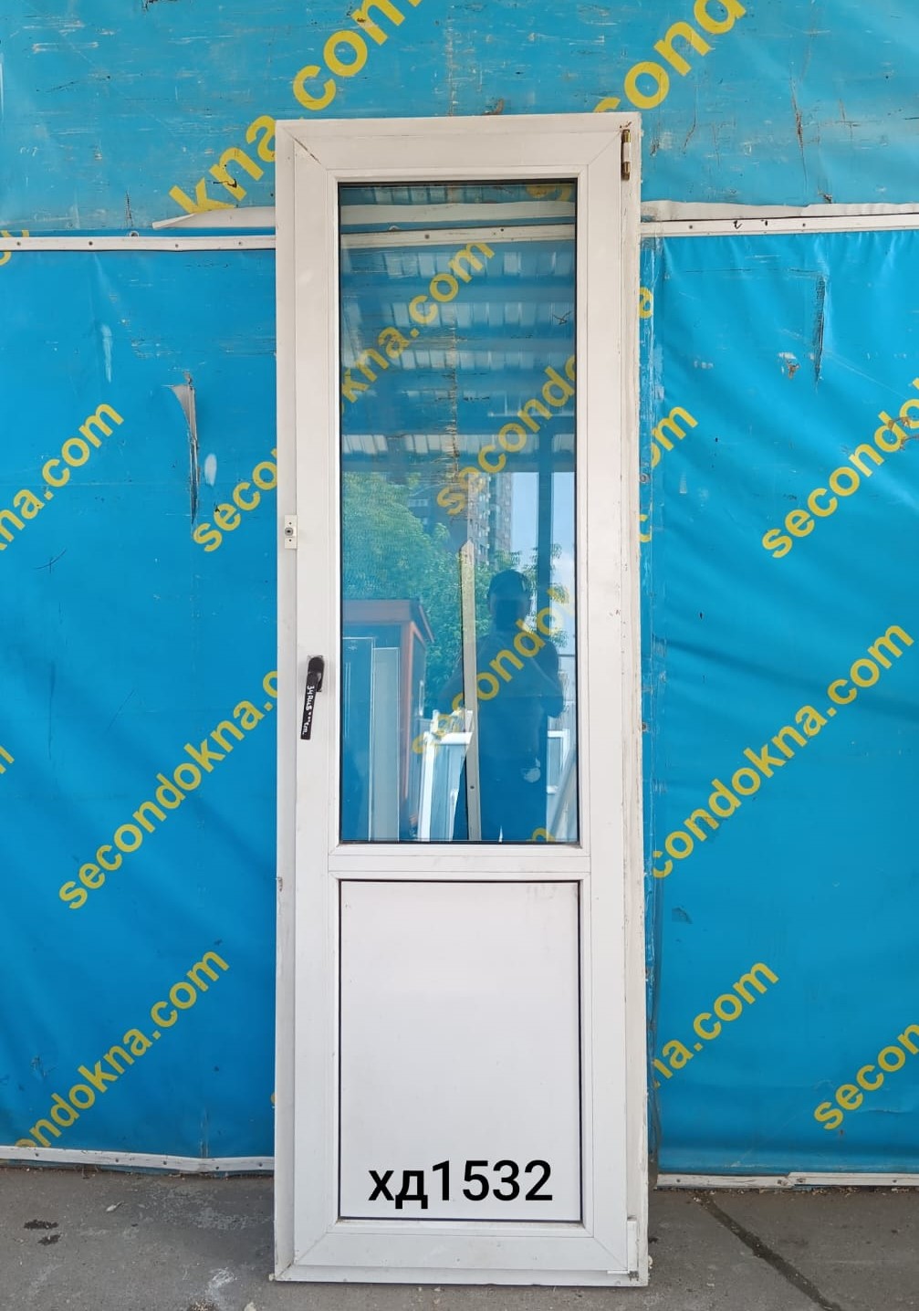 Пластиковая балконная дверь Б/У с однокамерным (2 стекла) стеклопакетом.