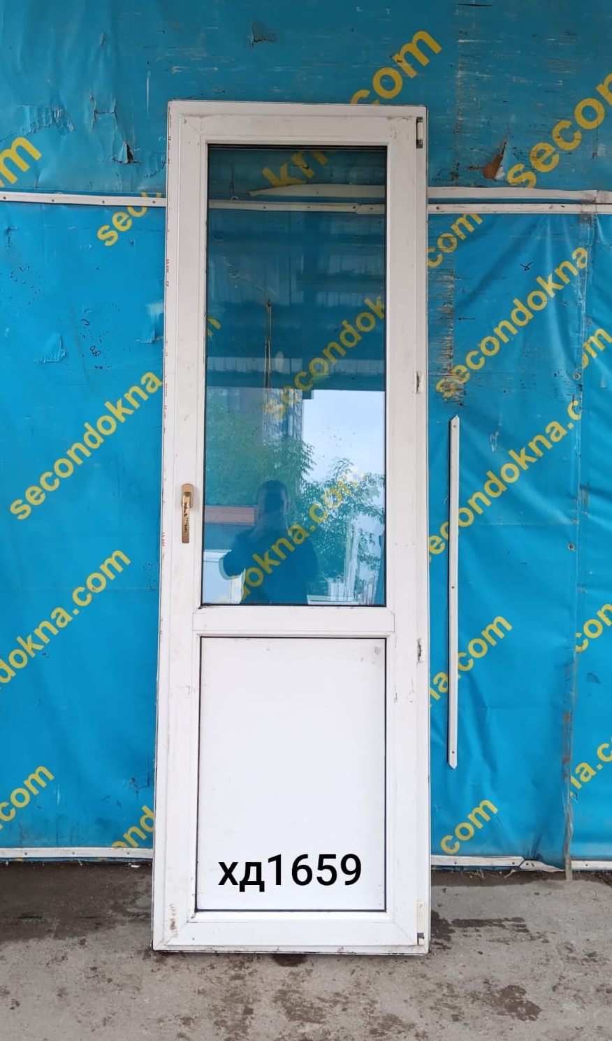 Пластиковая балконная дверь Б/У с однокамерным (2 стекла) стеклопакетом.