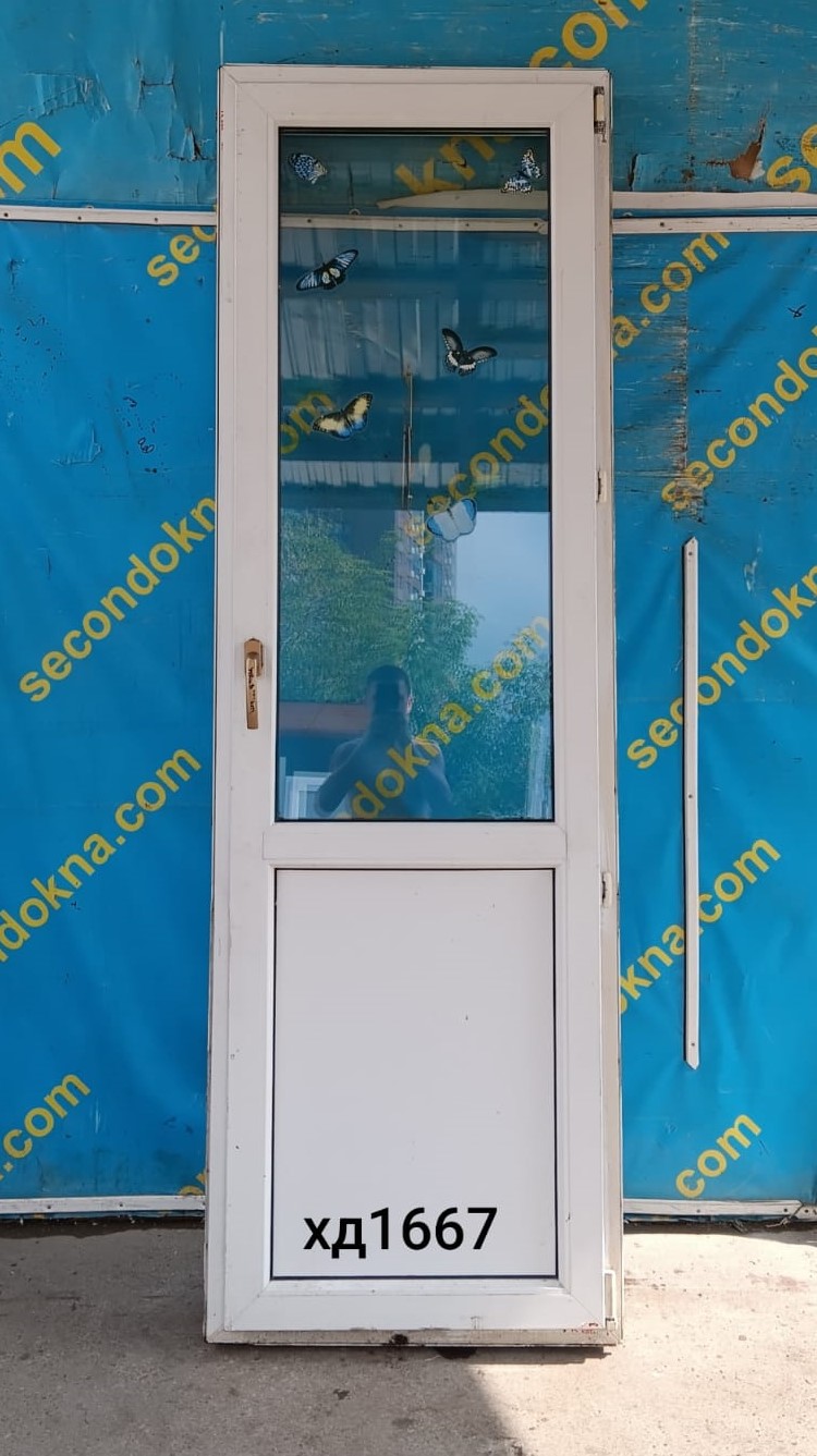 Пластиковая балконная дверь Б/У с однокамерным (2 стекла) стеклопакетом.