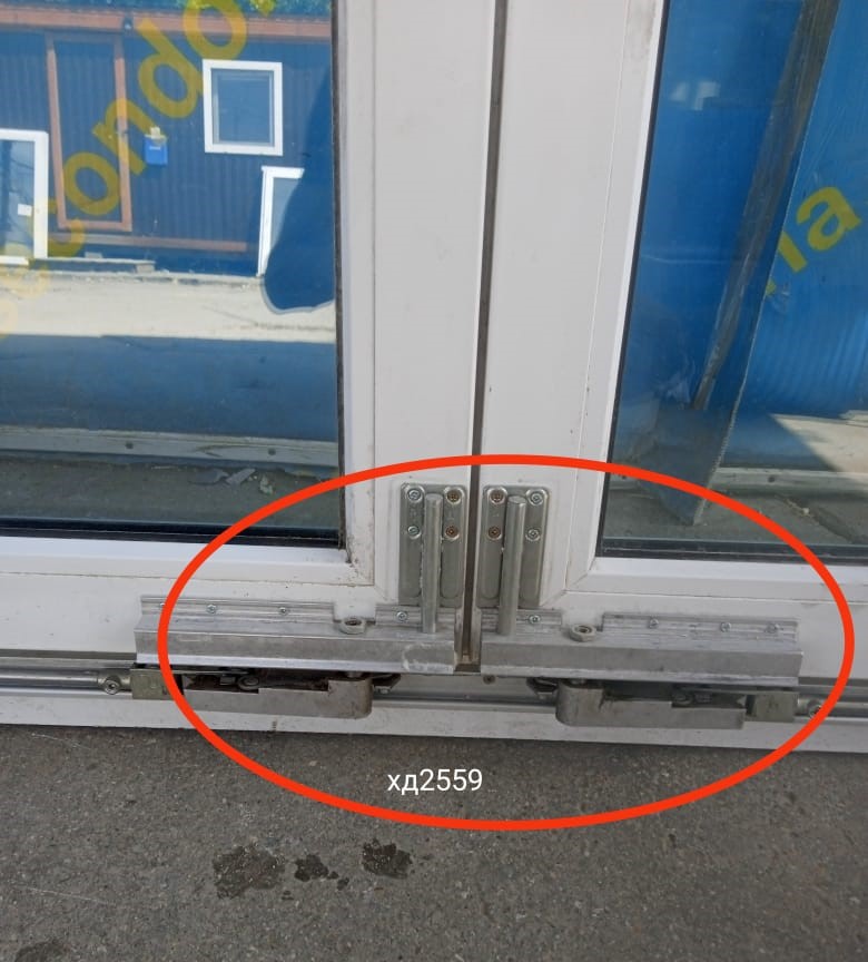 Пластиковая балконная дверь раздвижная Б/У с однокамерным (2 стекла) стеклопакетом.