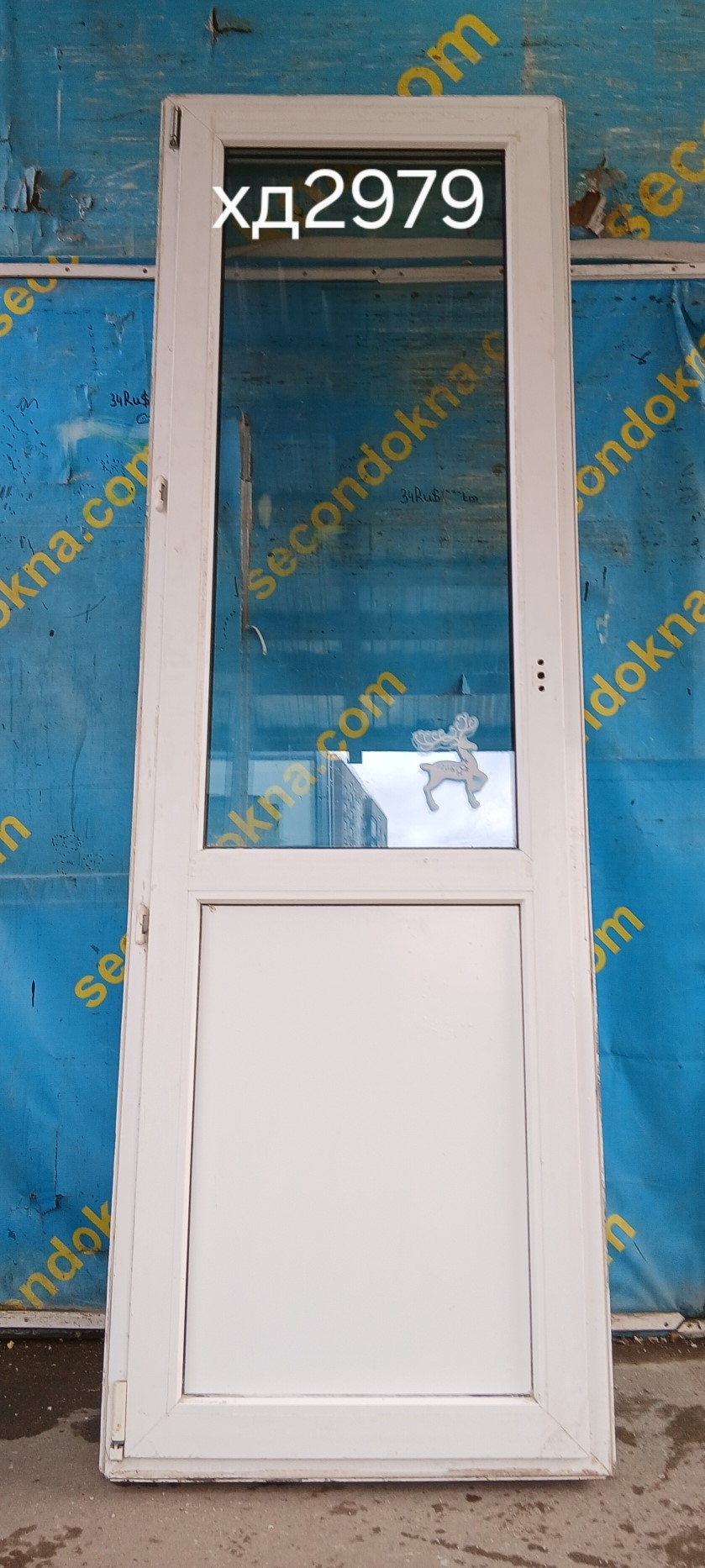 Пластиковая балконная дверь Б/У с однокамерным (2 стекла) стеклопакетом.