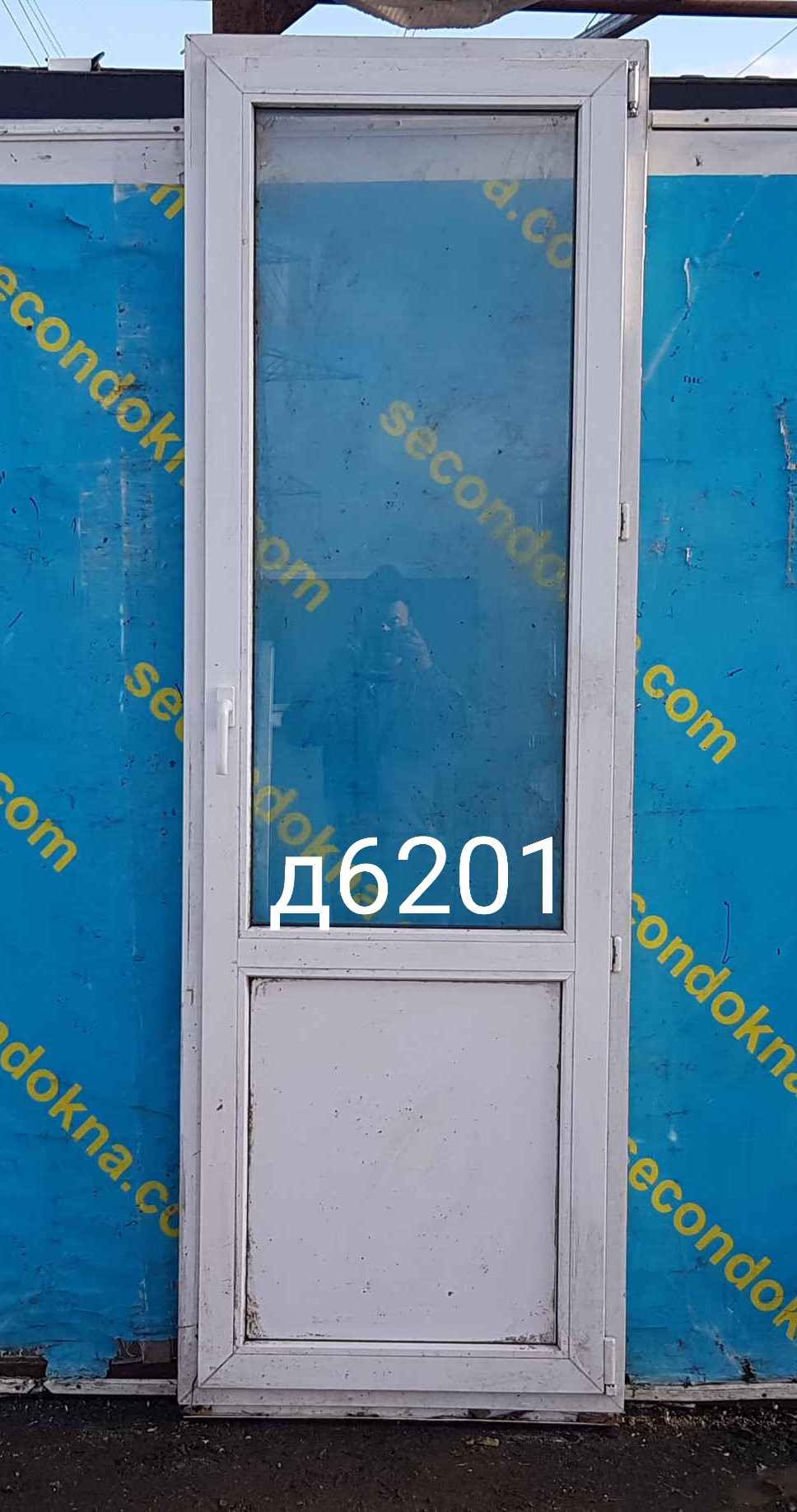 Пластиковая балконная дверь Б/У с однокамерным (2 стекла) стеклопакетом.