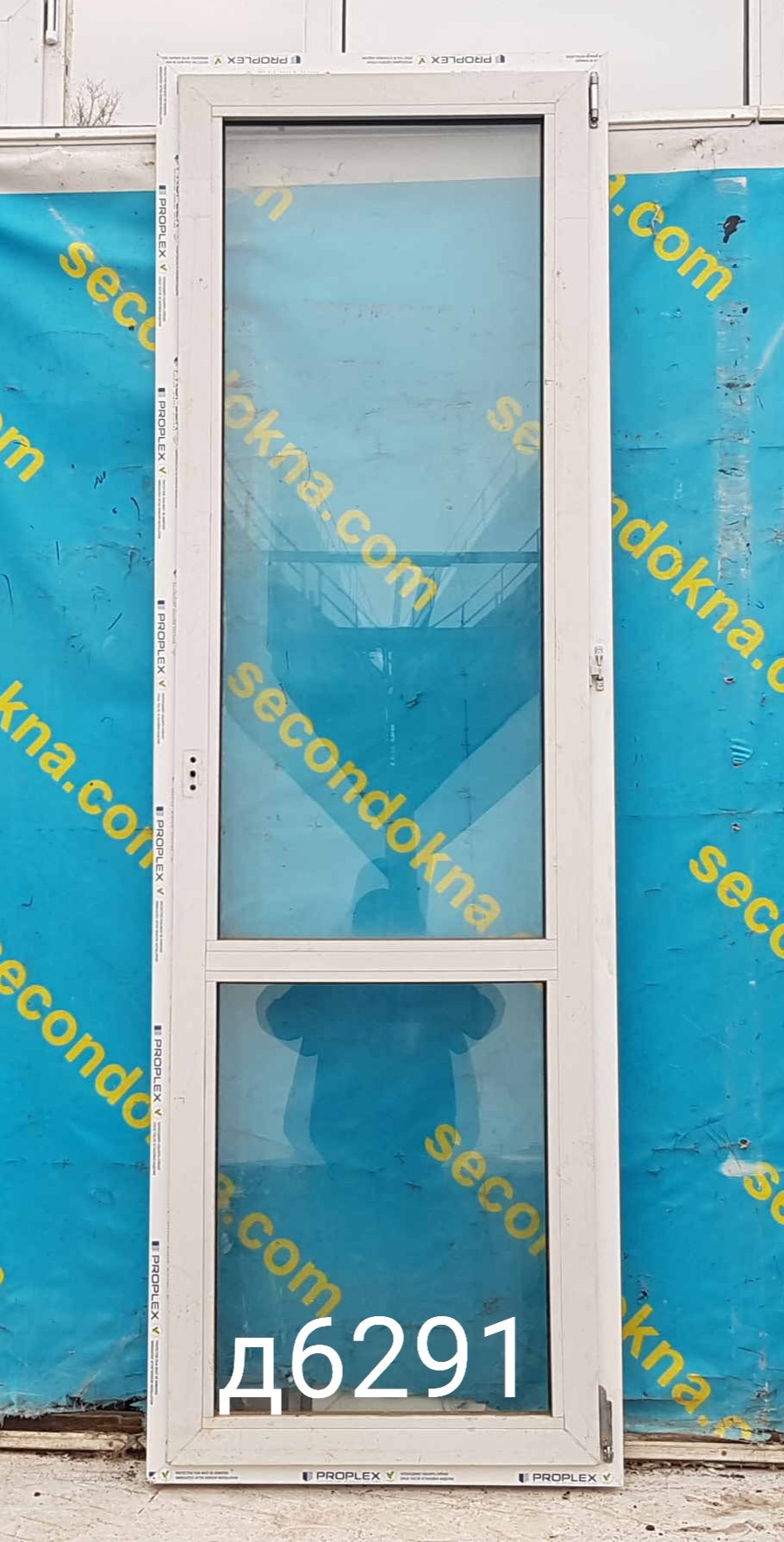 Пластиковая балконная дверь Б/У с однокамерным (2 стекла) стеклопакетом.