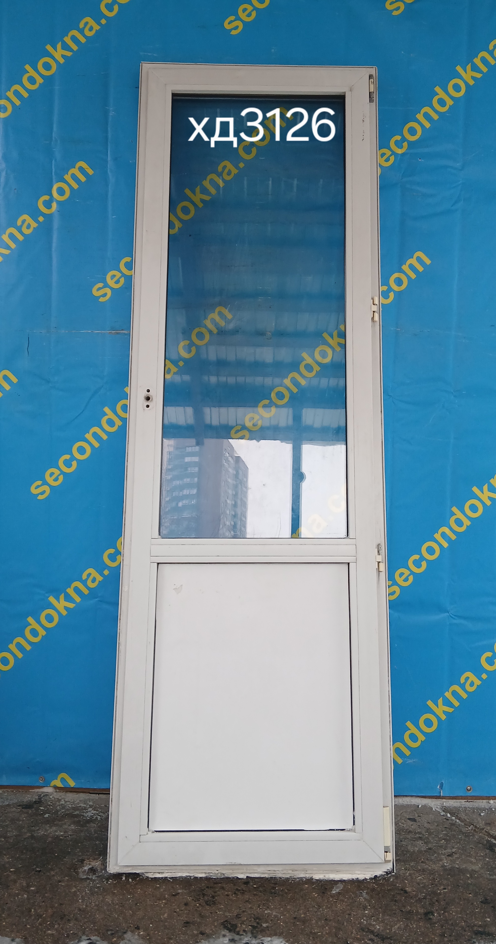 Пластиковая балконная дверь Б/У с однокамерным (2 стекла) стеклопакетом.