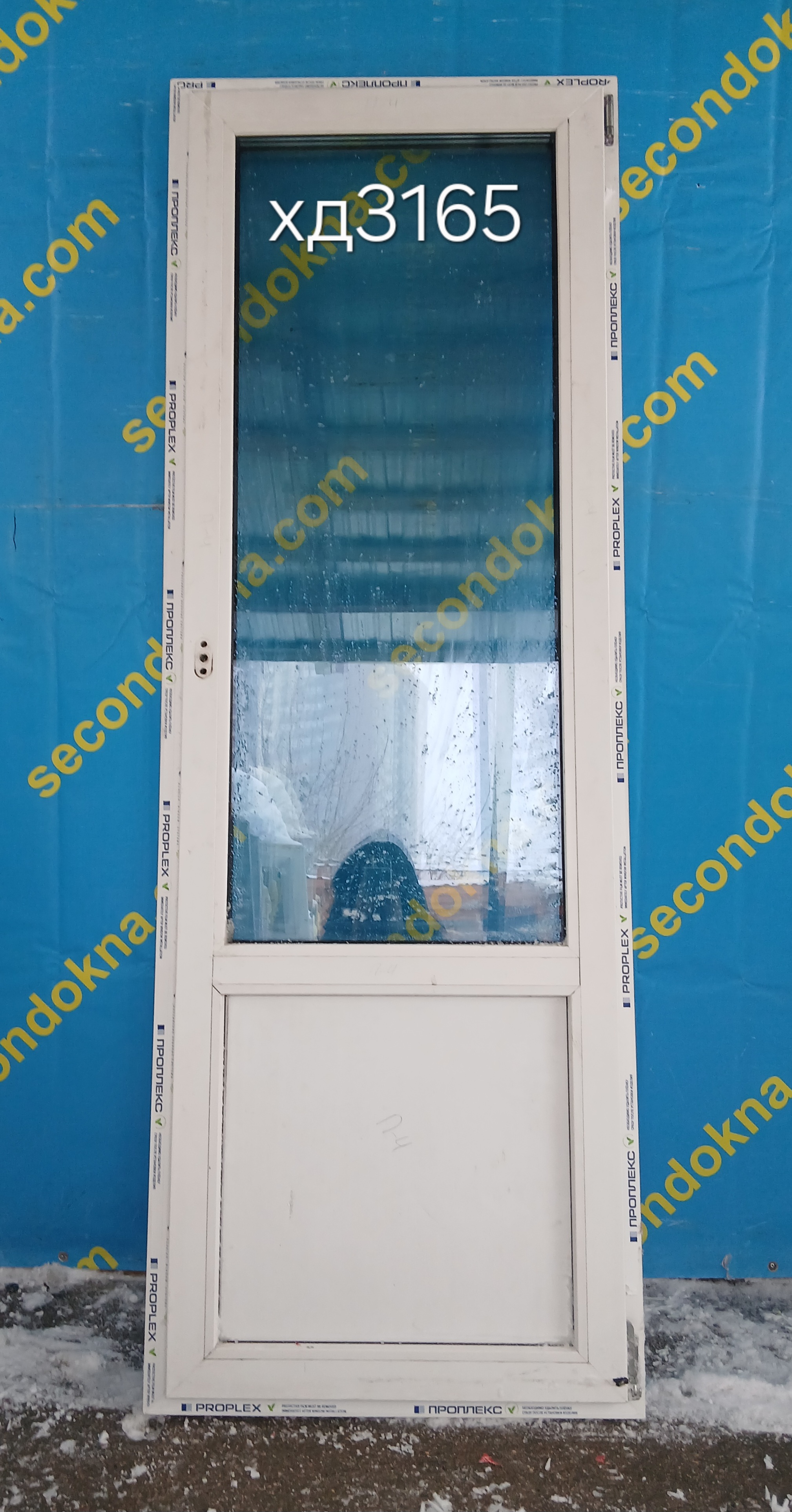 Пластиковая балконная дверь (НЕКОНДИЦИЯ) с двухкамерным (3 стекла) стеклопакетом.