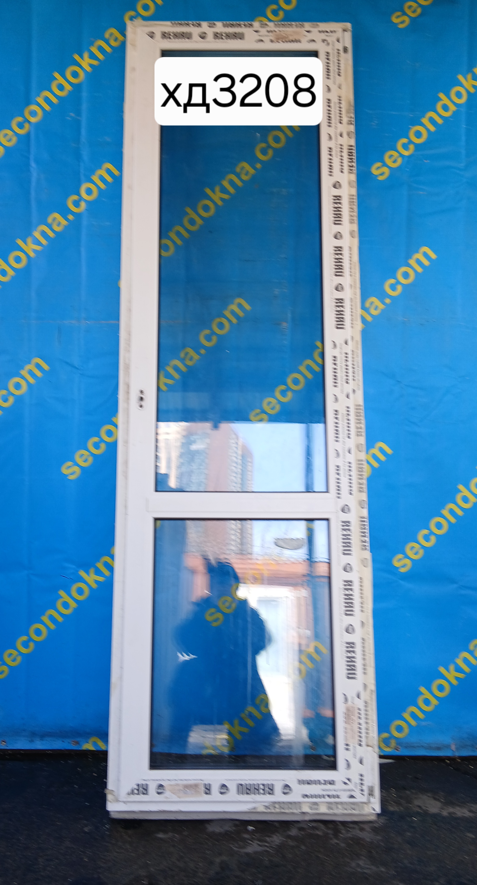 Пластиковая балконная дверь Б/У с двухкамерным (3 стекла) стеклопакетом.