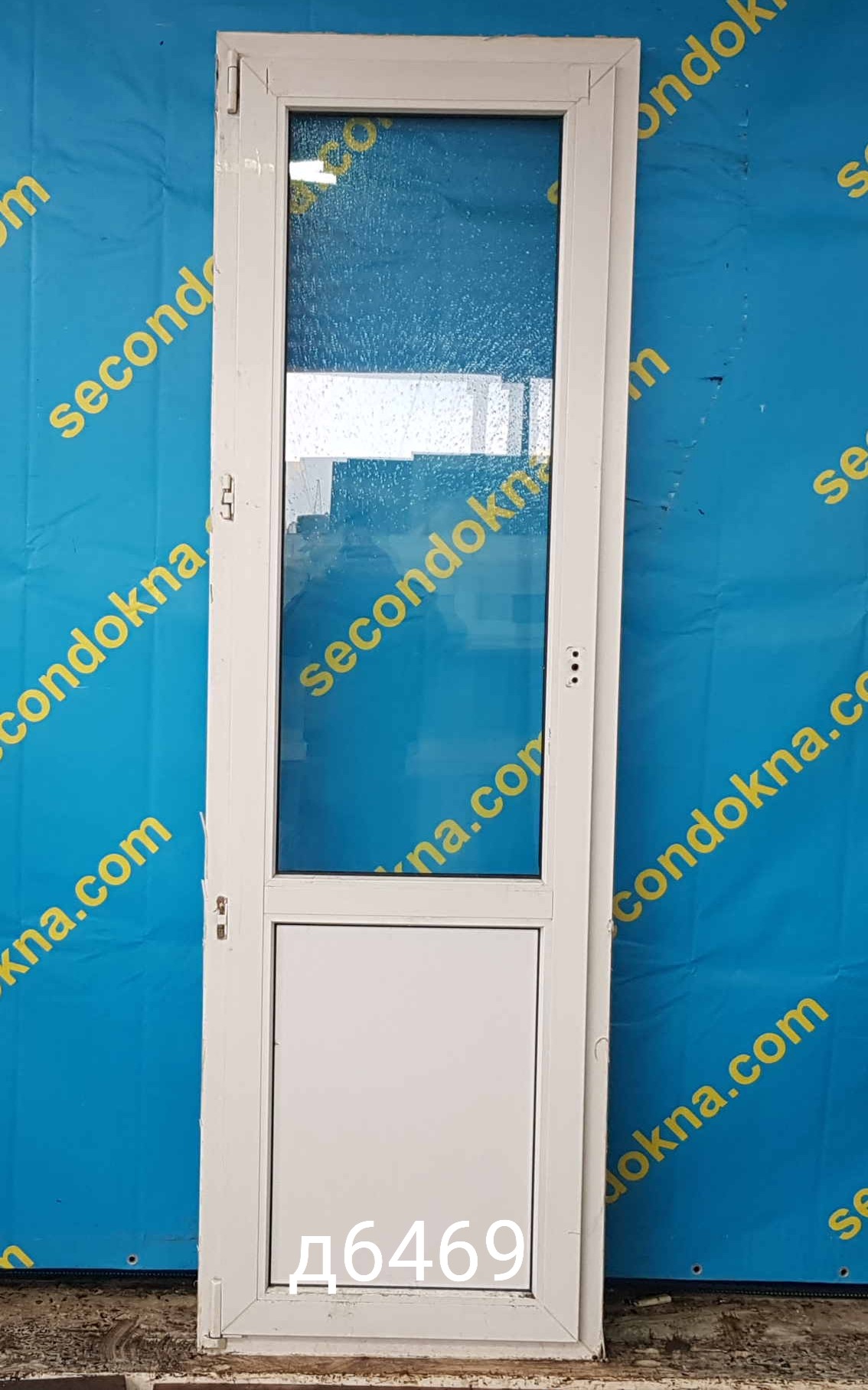 Пластиковая балконная дверь Б/У с однокамерным (2 стекла) стеклопакетом.