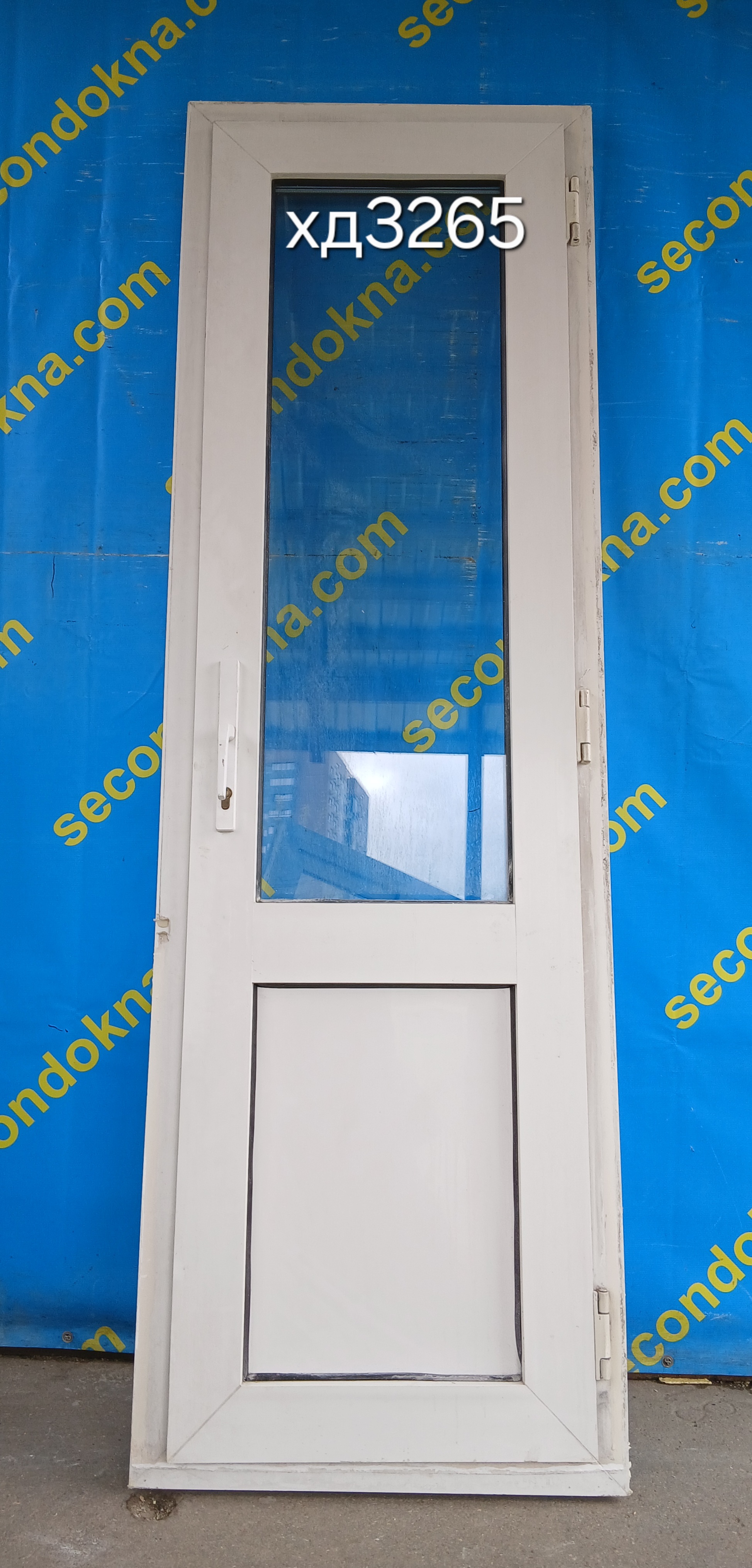 Пластиковая балконная дверь Б/У с двухкамерным (3 стекла) стеклопакетом.