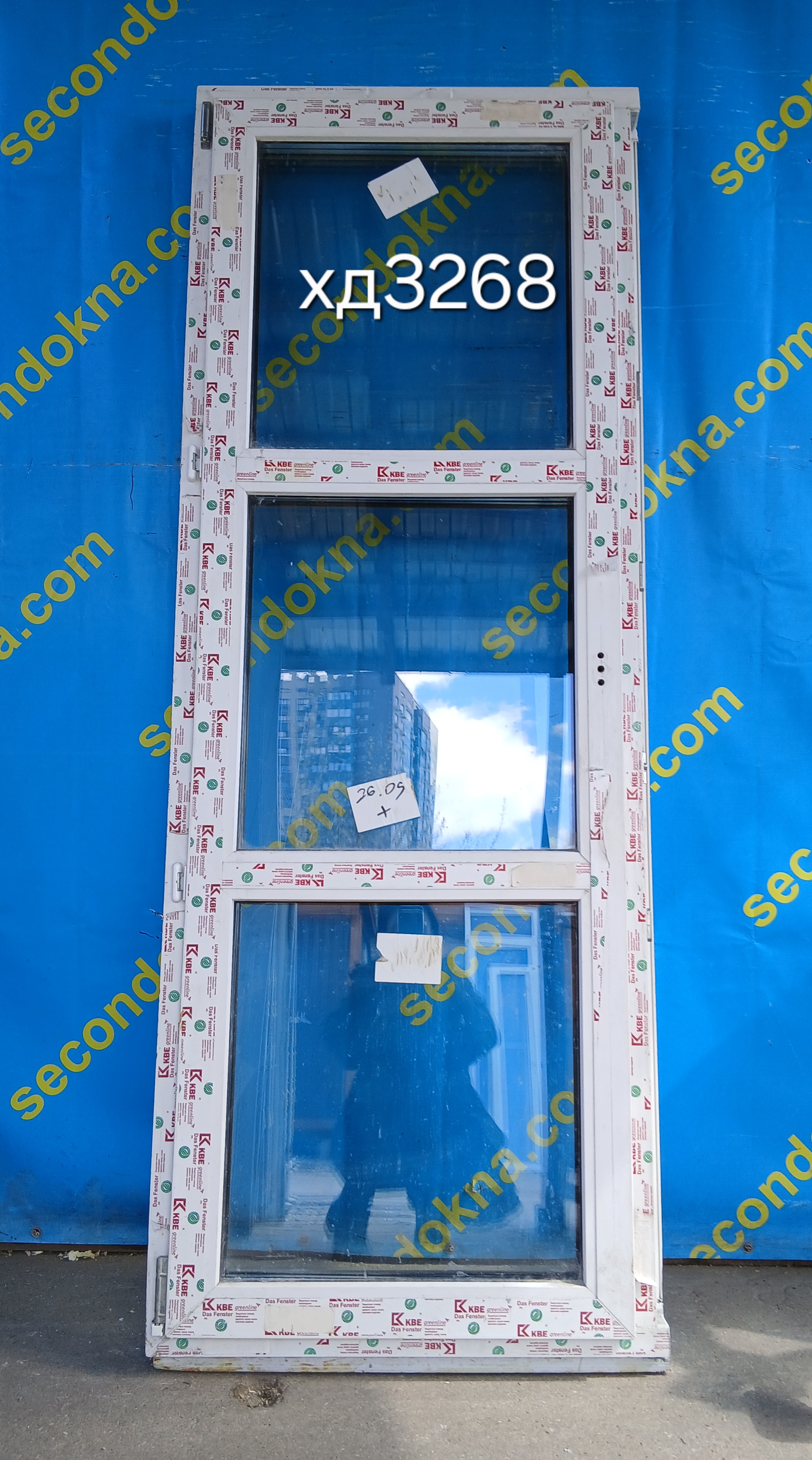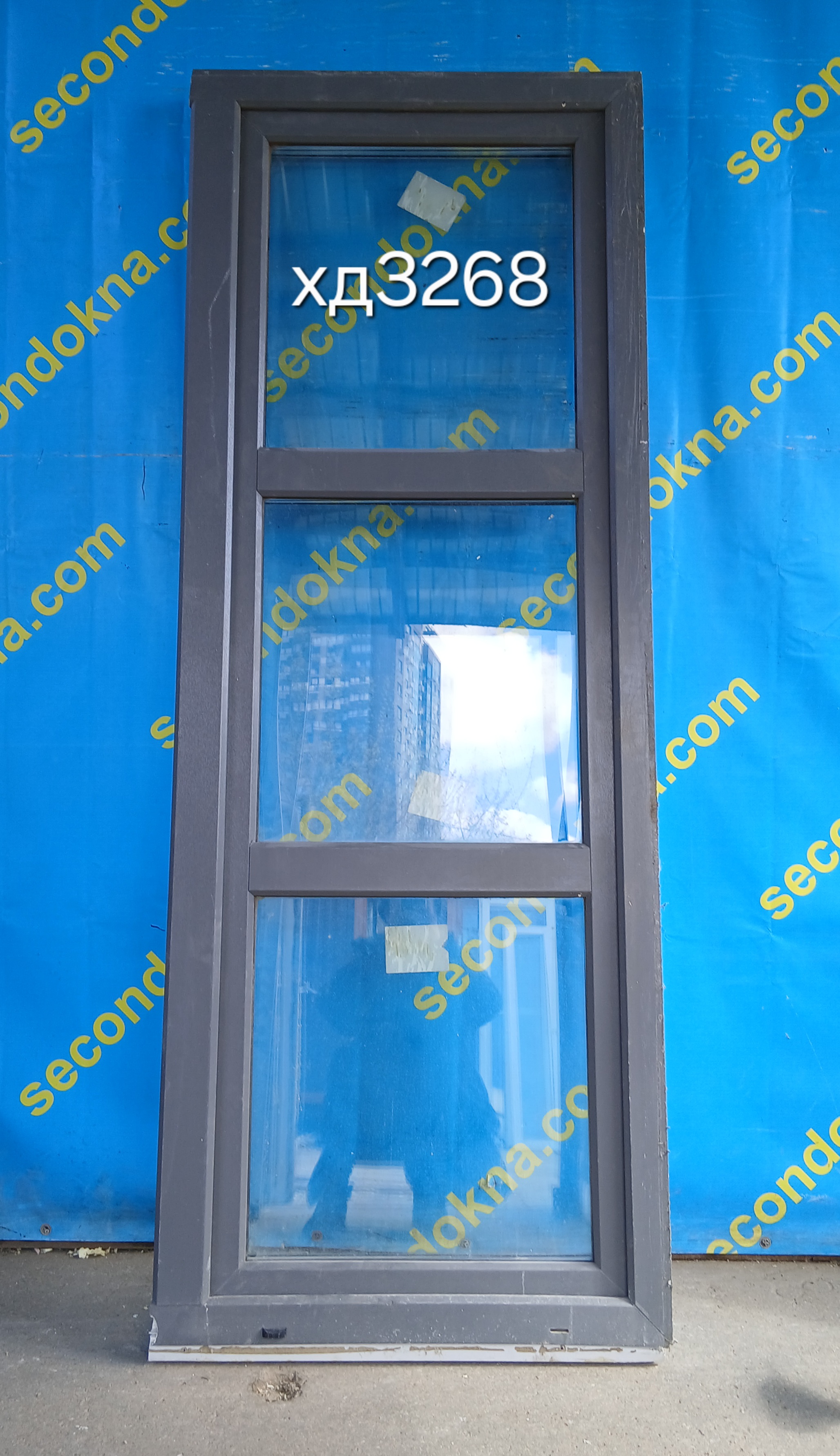 Пластиковая балконная дверь Б/У с двухкамерным (3 стекла) стеклопакетом.