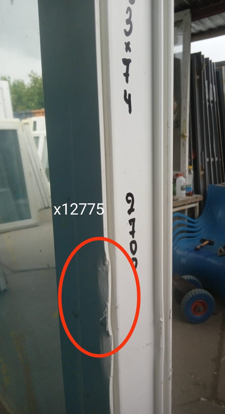 Вмятина на раме с фасадной стороны (фото).
