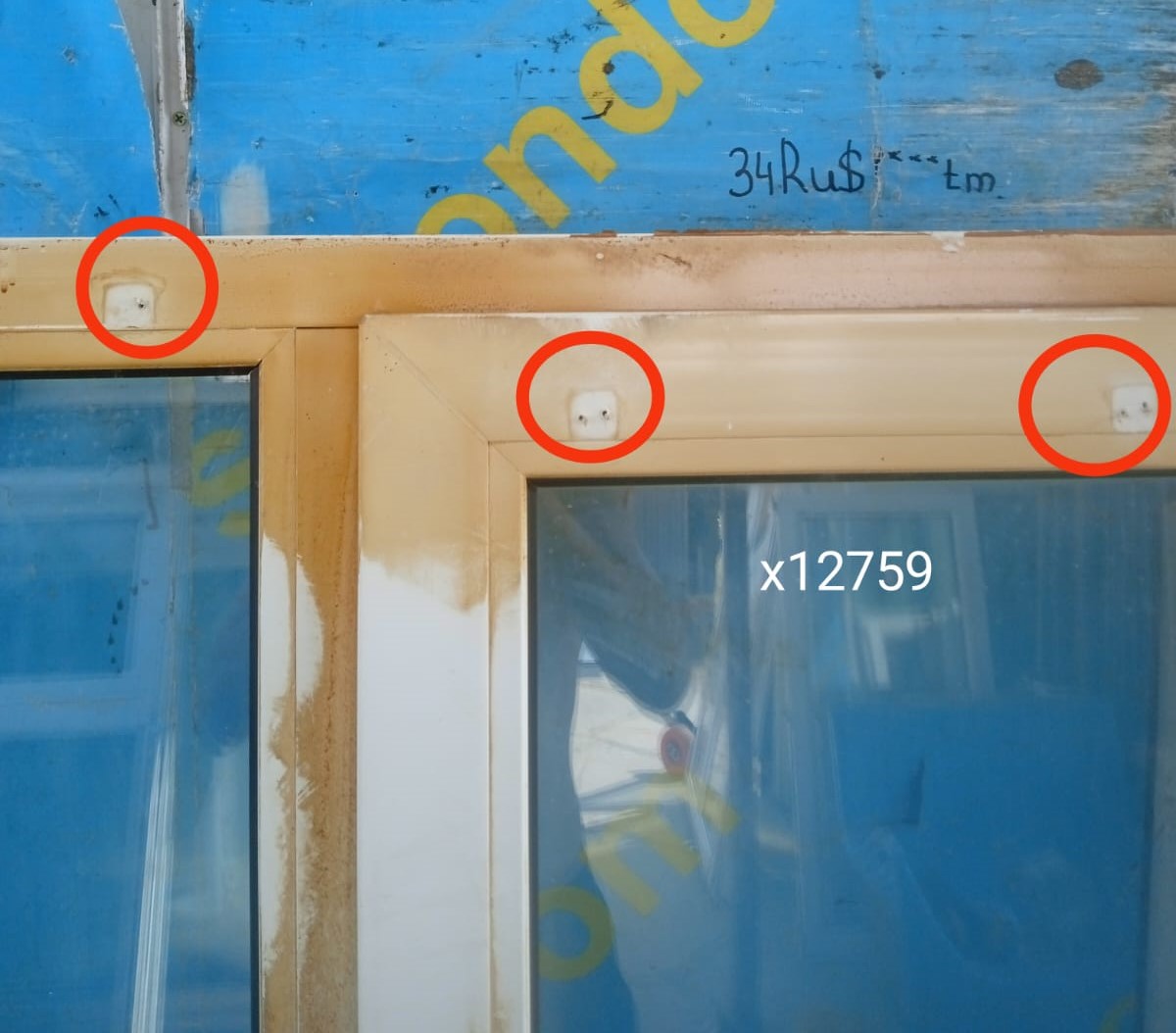 Следы от саморезов на раме (фото).