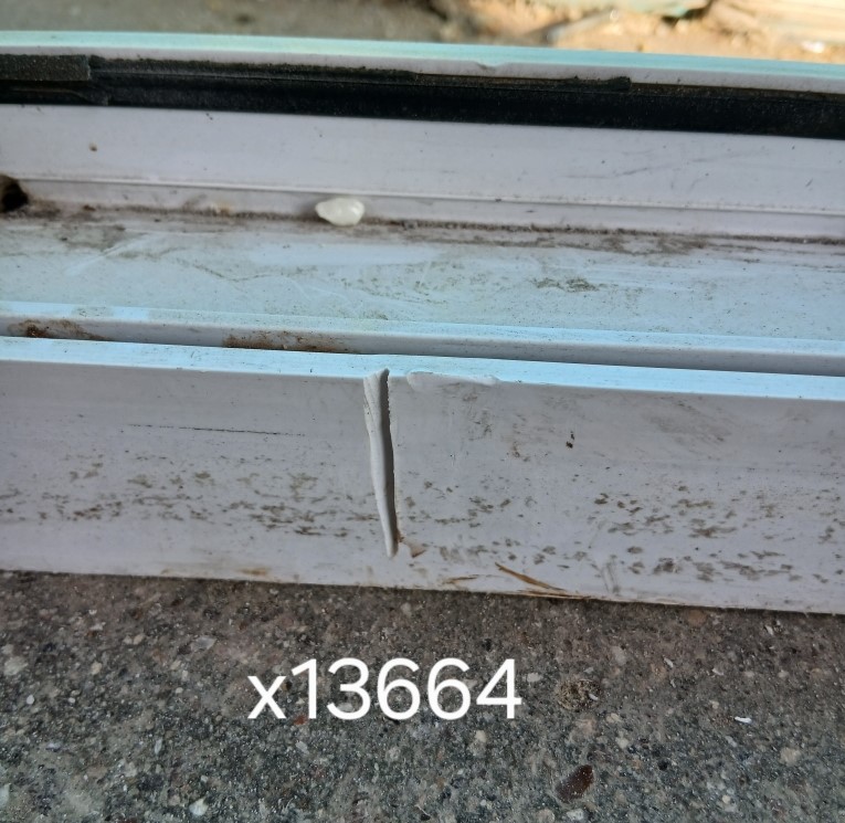 Пропил от "болгарки" на профиле под правой створкой (фото).