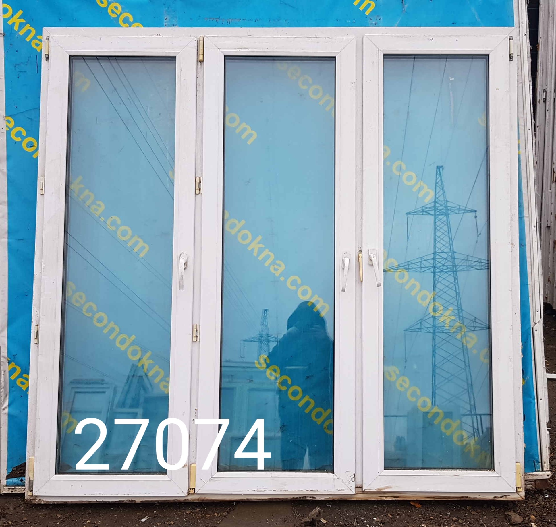 Пластиковое окно Б/У с двухкамерным (3 стекла) стеклопакетом.