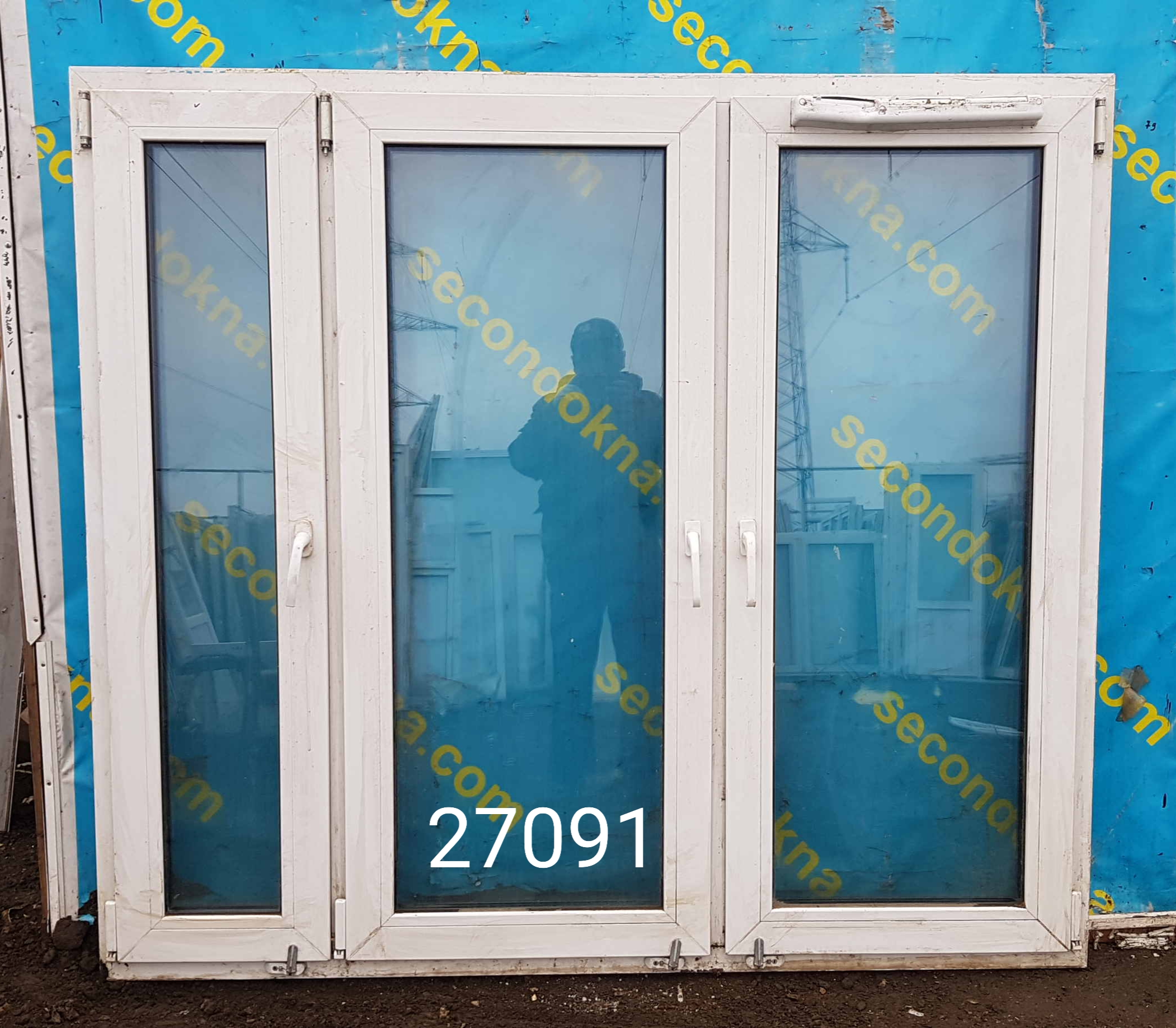 Пластиковое окно Б/У с двухкамерным (3 стекла) стеклопакетом.