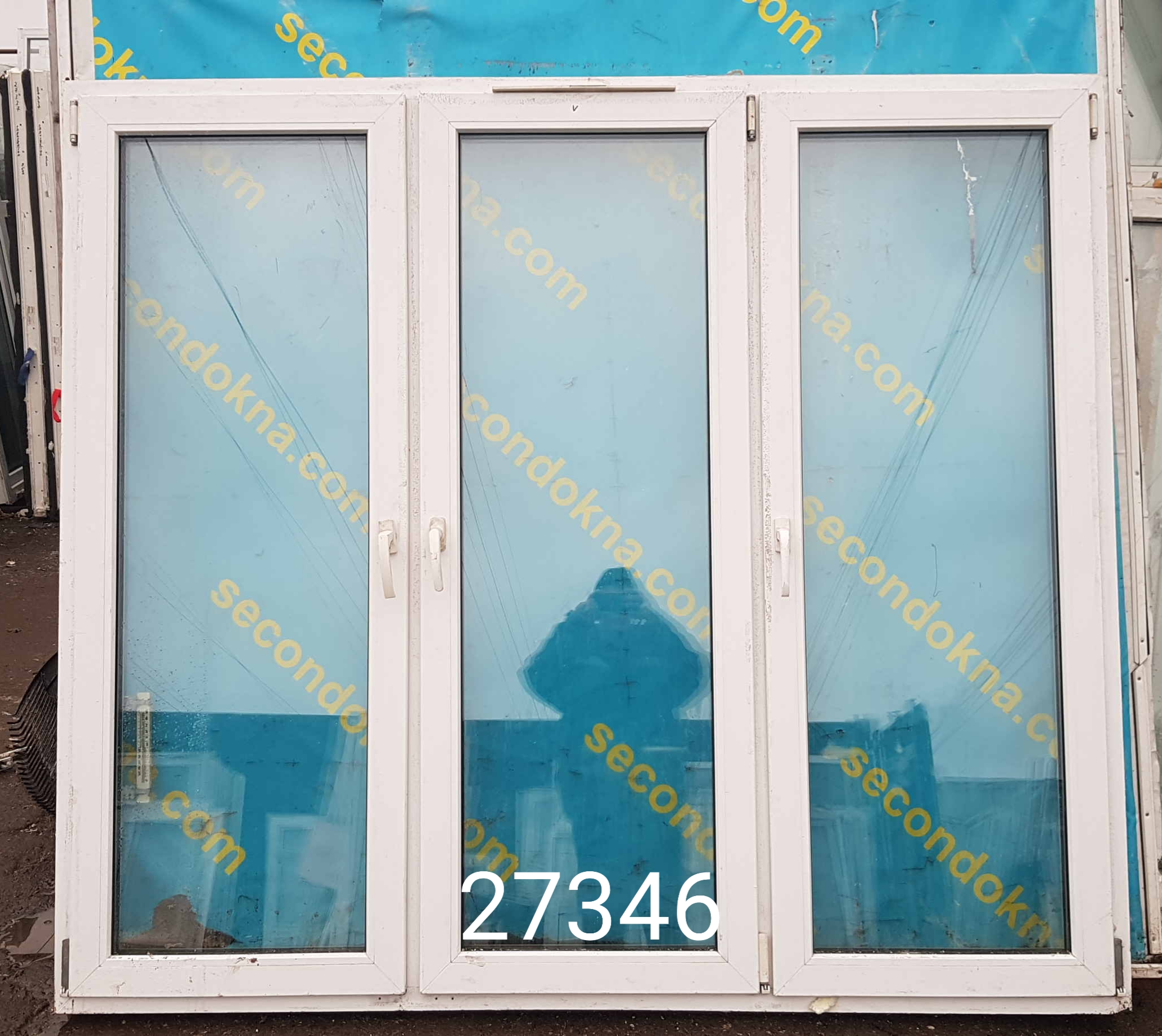 Пластиковое окно Б/У с двухкамерным (3 стекла) стеклопакетом.